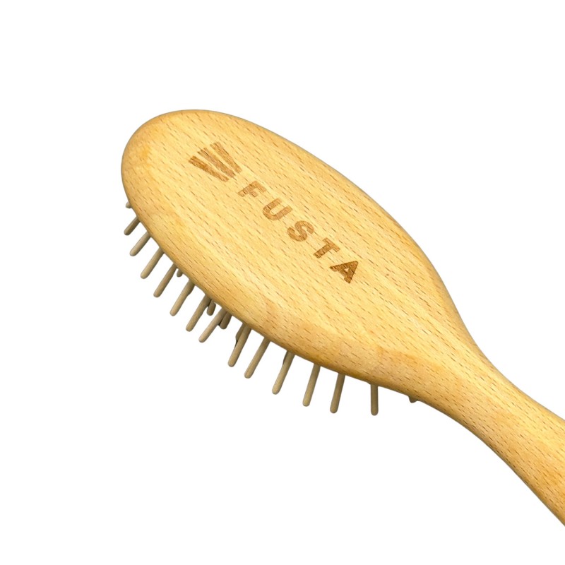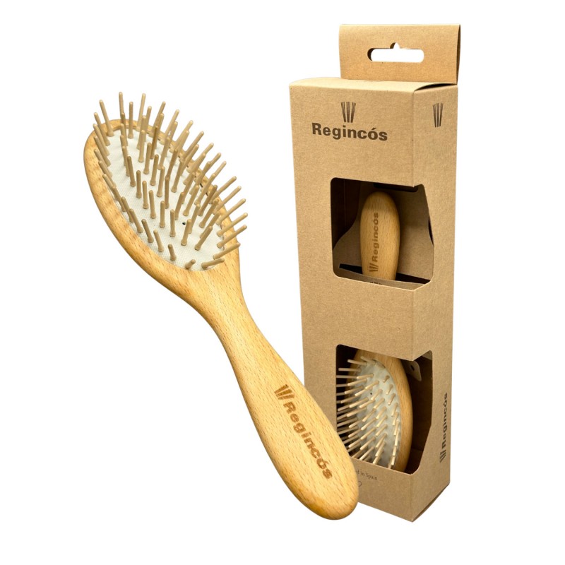 Designed for all kind of hair, the Regincós brush FUSTA Oval S is the smallest one in the FUSTA collection, and thanks to its small size, it's easy to use as a travel brush to take anywhere.
