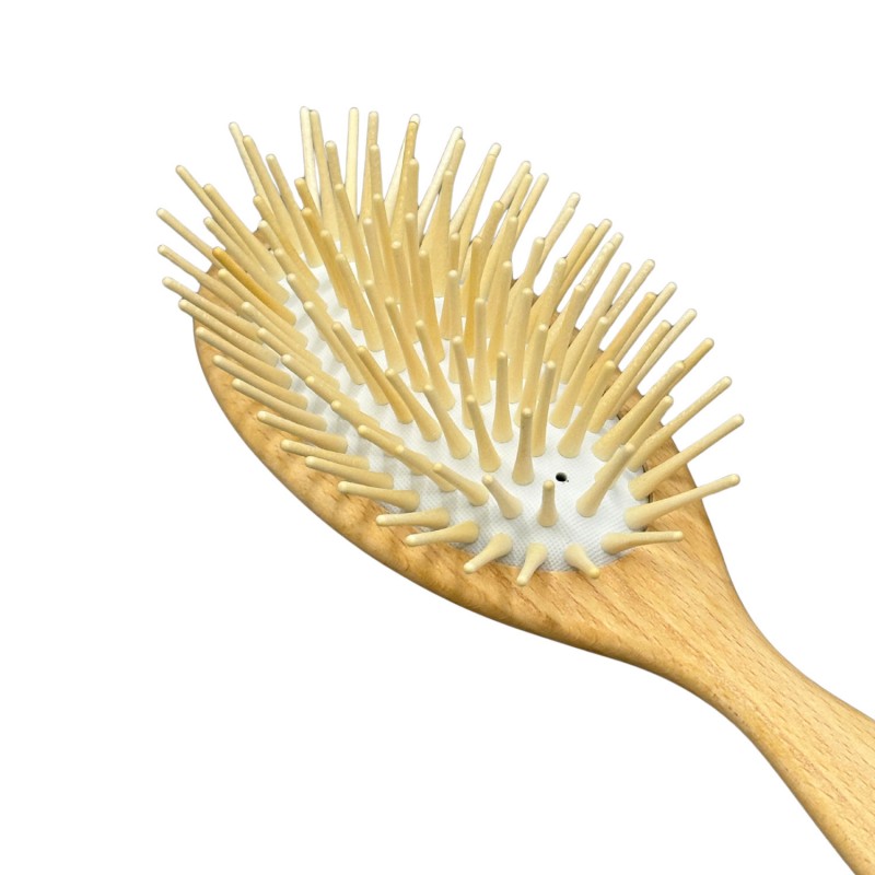 Made from natural beech wood, it helps protect the hair, while its wooden pins provide a pleasant massage effect, stimulating blood circulation and helping to absorb excess oil and impurities.